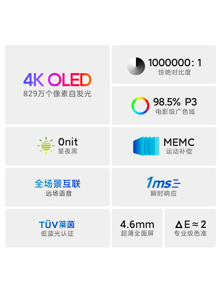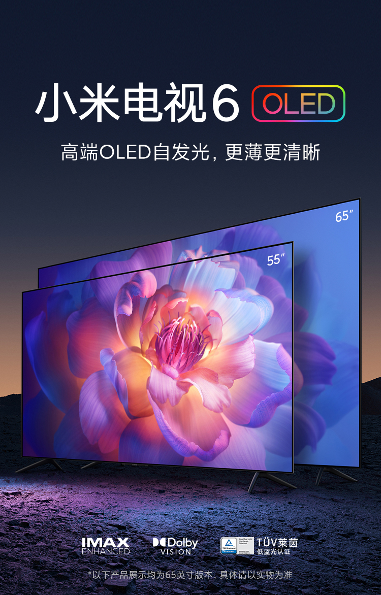 小米電視6 OLED 65英寸 4KHDR 超薄全面屏 MEMC運動(dòng)補償 3+32GB 遠場(chǎng)語(yǔ)音 護眼教育電視機